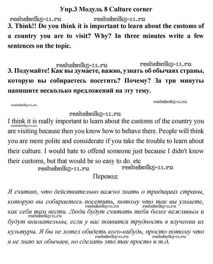 Готовая домашняя работа с ответами по Английскому языку за 11 класс Эванс, Дули, Оби, Афанасьева, Михеева Учебник Spotlight Просвещение 2015 ФГОС - Culture corner 8 3