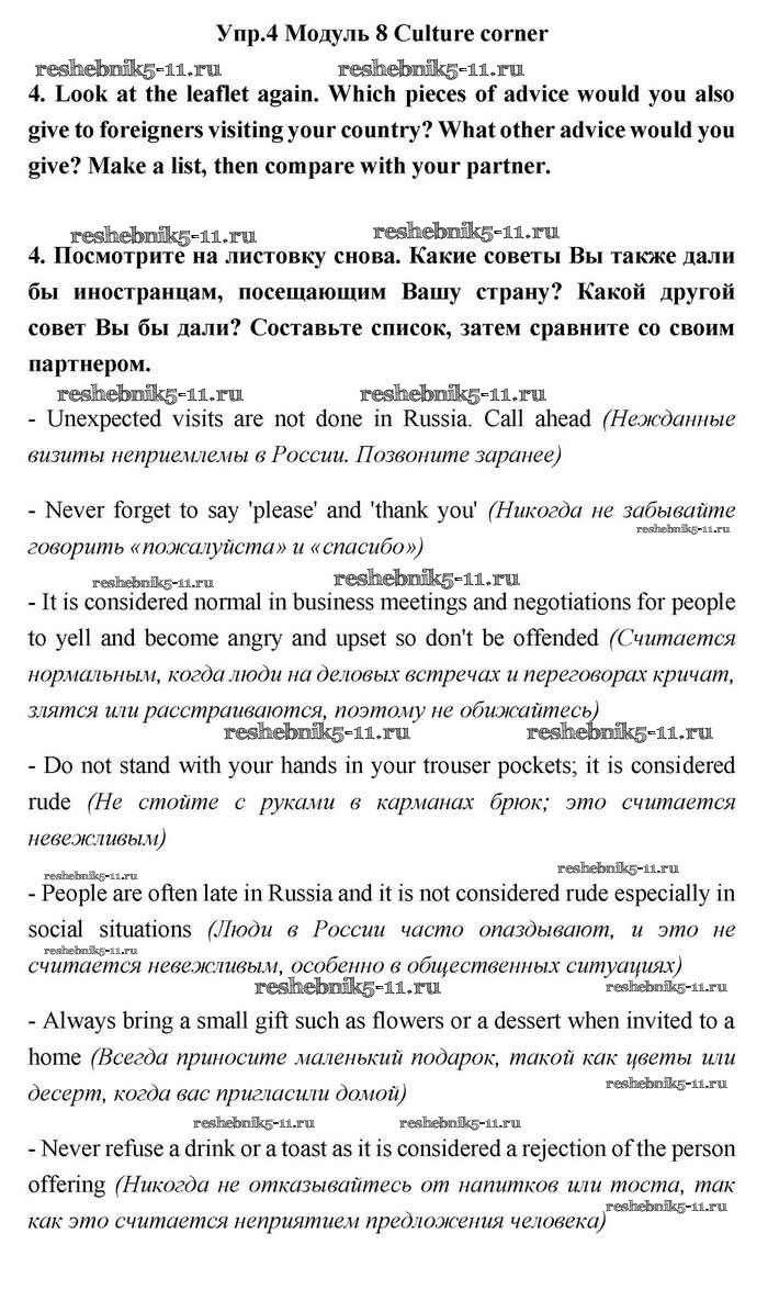 Решебник №1 / module 8 / culture corner 8 / 4
