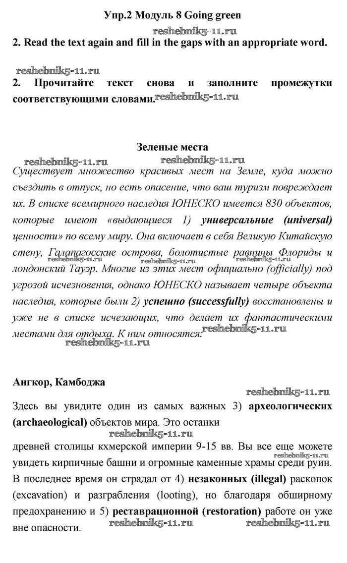 Готовая домашняя работа с ответами по Английскому языку за 11 класс Эванс, Дули, Оби, Афанасьева, Михеева Учебник Spotlight Просвещение 2015 ФГОС - Going green 2