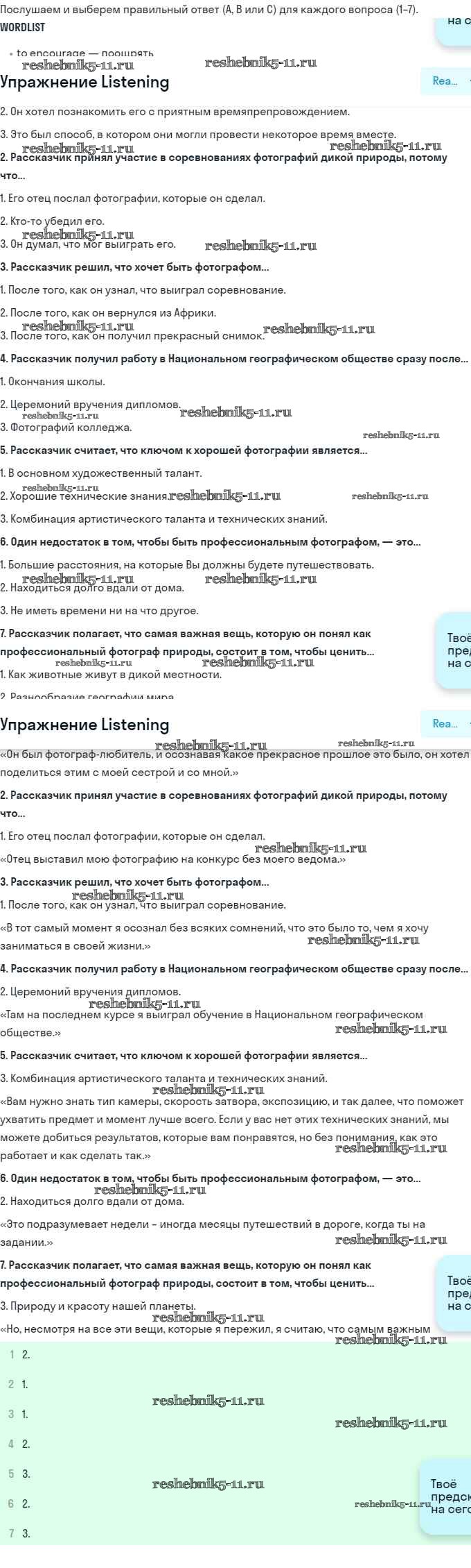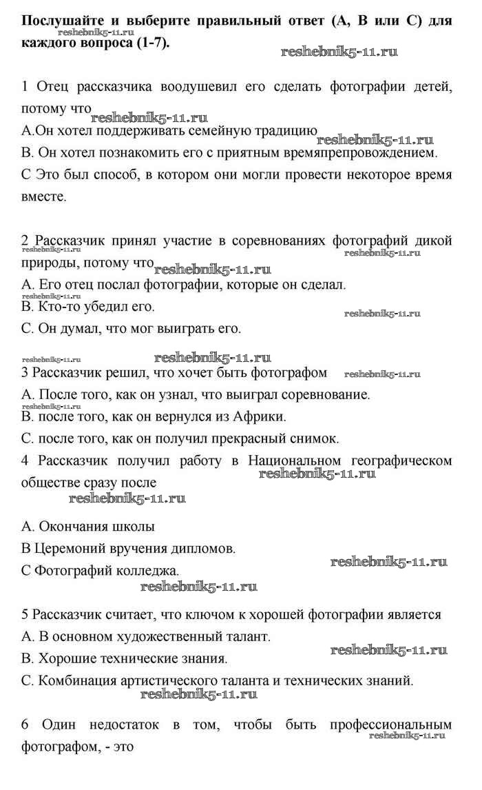 Готовая домашняя работа с ответами по Английскому языку за 11 класс Эванс, Дули, Оби, Афанасьева, Михеева Учебник Spotlight Просвещение 2015 ФГОС - Spotlight on exams Listening