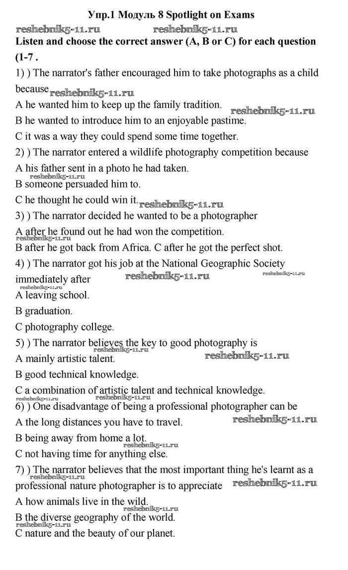 Решебник №2 / module 8 / spotlight on exams / listening