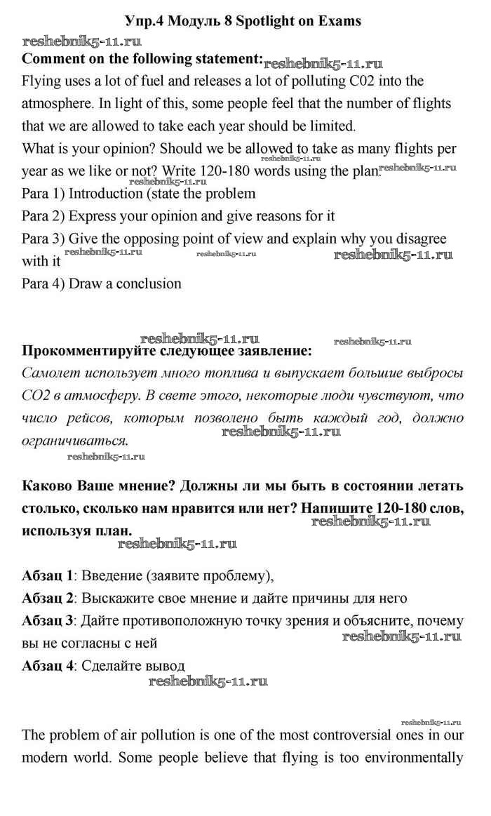 Готовая домашняя работа с ответами по Английскому языку за 11 класс Эванс, Дули, Оби, Афанасьева, Михеева Учебник Spotlight Просвещение 2015 ФГОС - Spotlight on exams Writing
