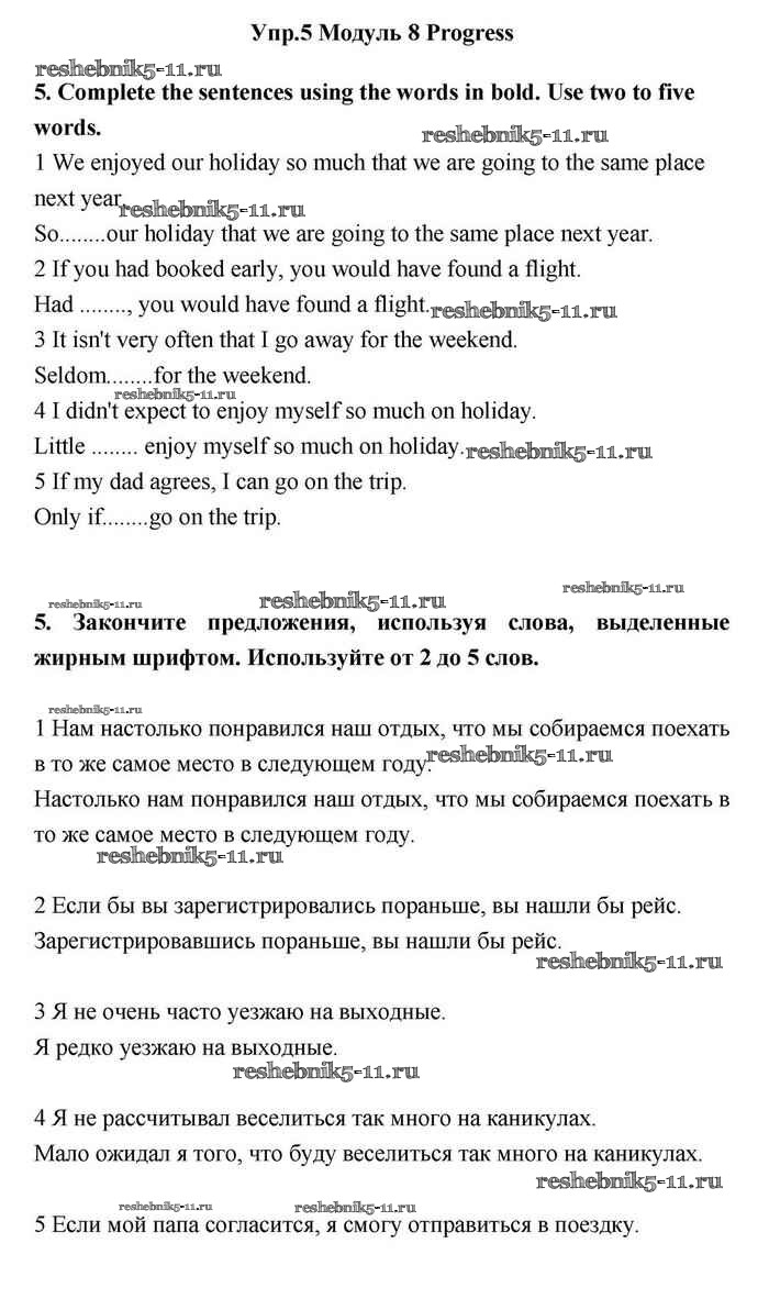 Готовая домашняя работа с ответами по Английскому языку за 11 класс Эванс, Дули, Оби, Афанасьева, Михеева Учебник Spotlight Просвещение 2015 ФГОС - Progress check 8 5