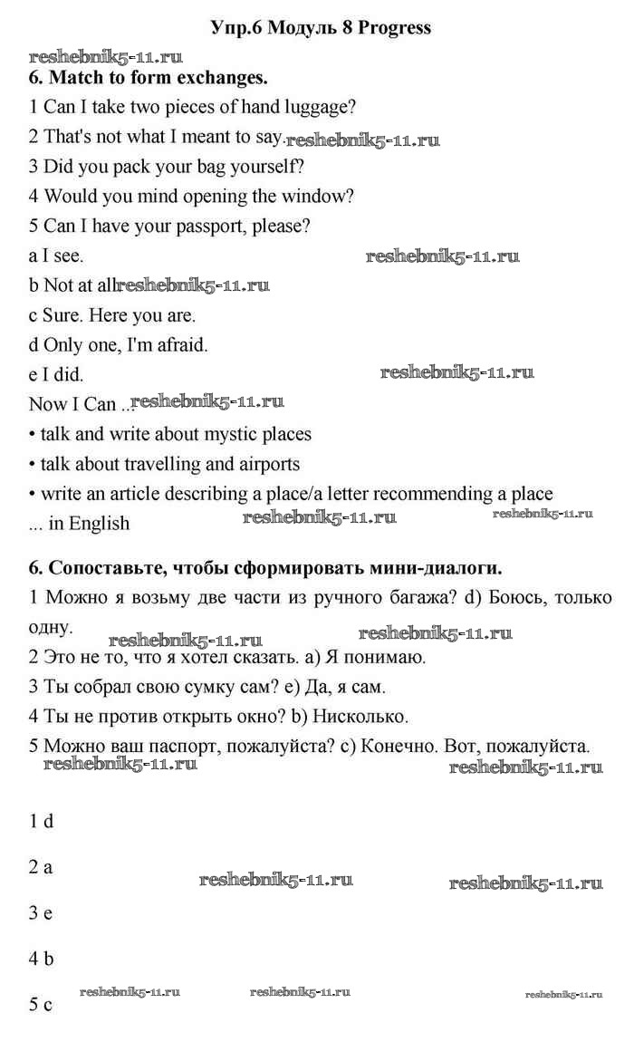 Готовая домашняя работа с ответами по Английскому языку за 11 класс Эванс, Дули, Оби, Афанасьева, Михеева Учебник Spotlight Просвещение 2015 ФГОС - Progress check 8 6