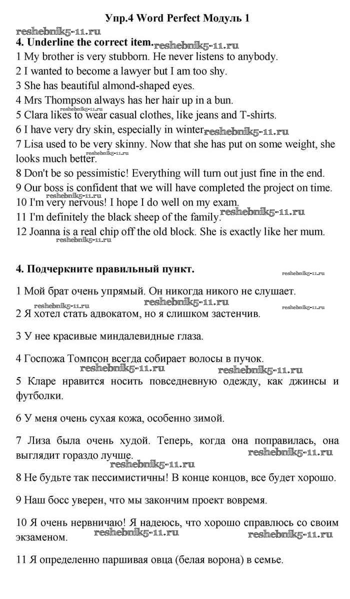 Готовая домашняя работа с ответами по Английскому языку за 11 класс Эванс, Дули, Оби, Афанасьева, Михеева Учебник Spotlight Просвещение 2015 ФГОС - Module 1 4