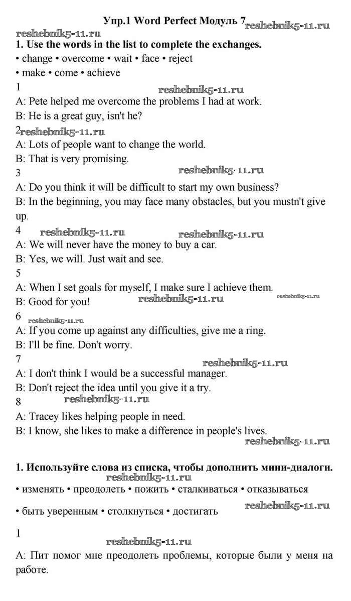 Готовая домашняя работа с ответами по Английскому языку за 11 класс Эванс, Дули, Оби, Афанасьева, Михеева Учебник Spotlight Просвещение 2015 ФГОС - Module 7 1