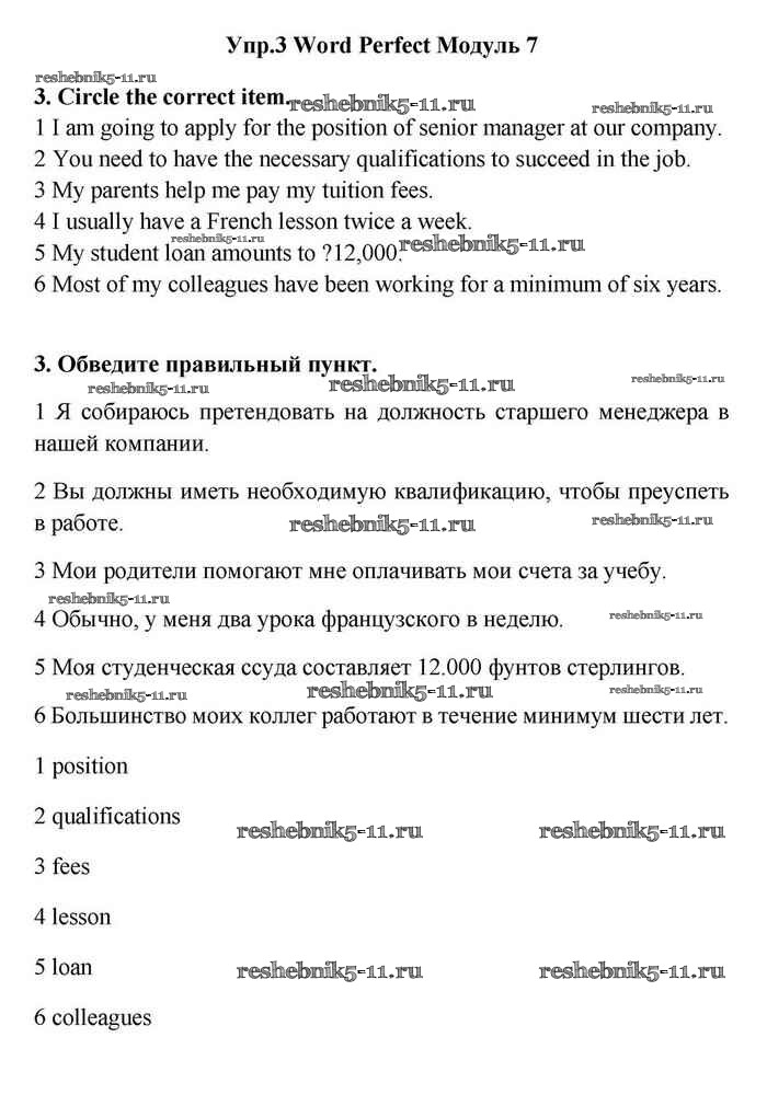 Готовая домашняя работа с ответами по Английскому языку за 11 класс Эванс, Дули, Оби, Афанасьева, Михеева Учебник Spotlight Просвещение 2015 ФГОС - Module 7 3