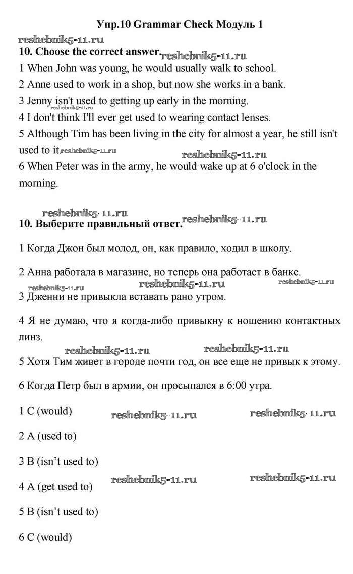 Решебник №1 / grammar check / module 1 / 10