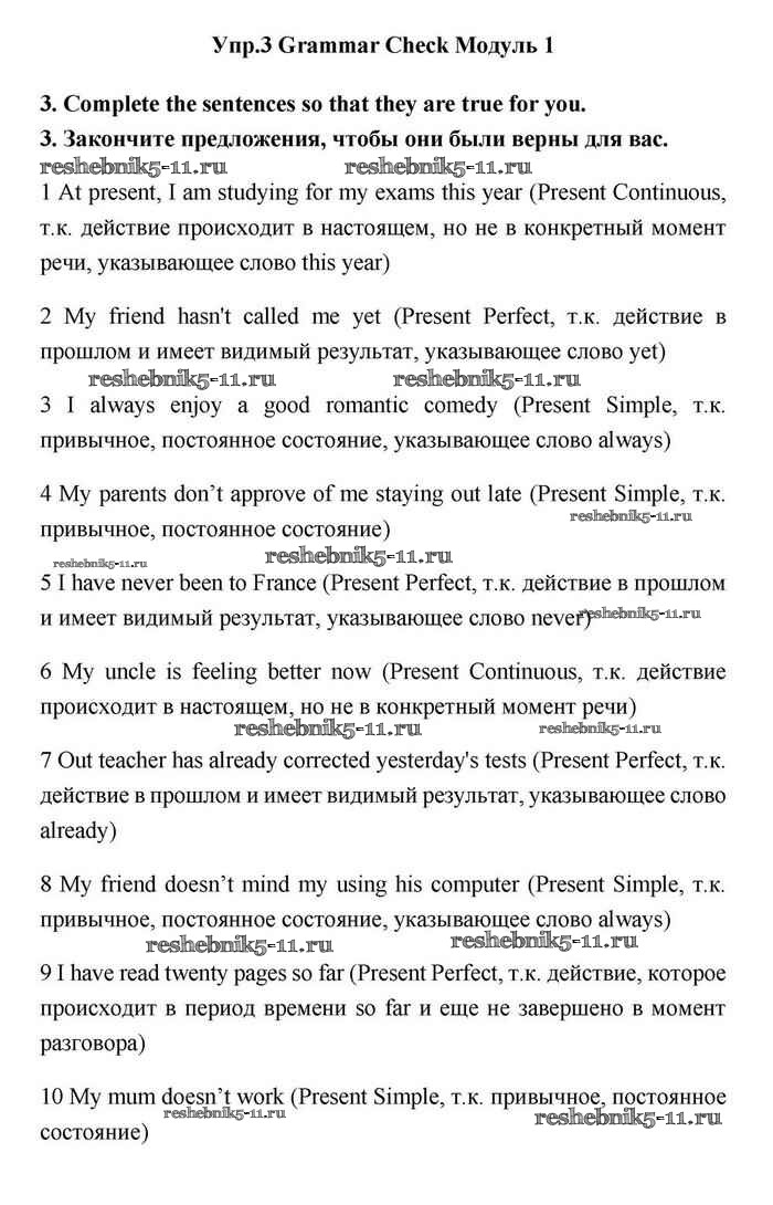 Готовая домашняя работа с ответами по Английскому языку за 11 класс Эванс, Дули, Оби, Афанасьева, Михеева Учебник Spotlight Просвещение 2015 ФГОС - Module 1 3
