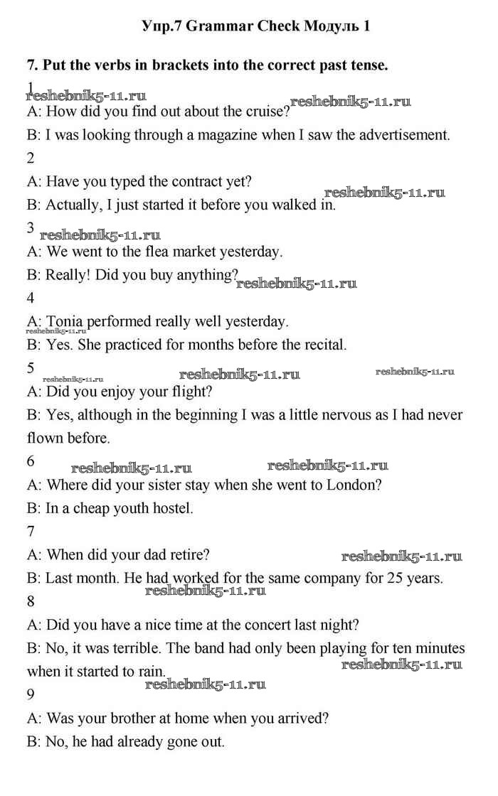 Решебник №1 / grammar check / module 1 / 7