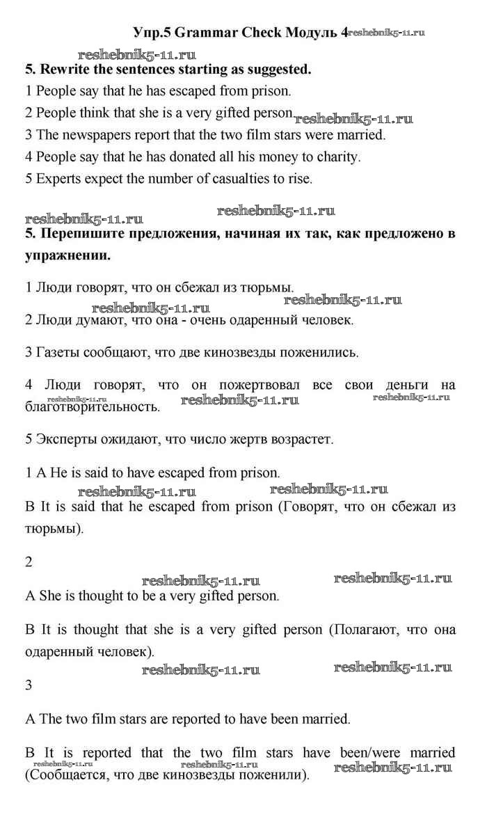 Готовая домашняя работа с ответами по Английскому языку за 11 класс Эванс, Дули, Оби, Афанасьева, Михеева Учебник Spotlight Просвещение 2015 ФГОС - Module 4 5