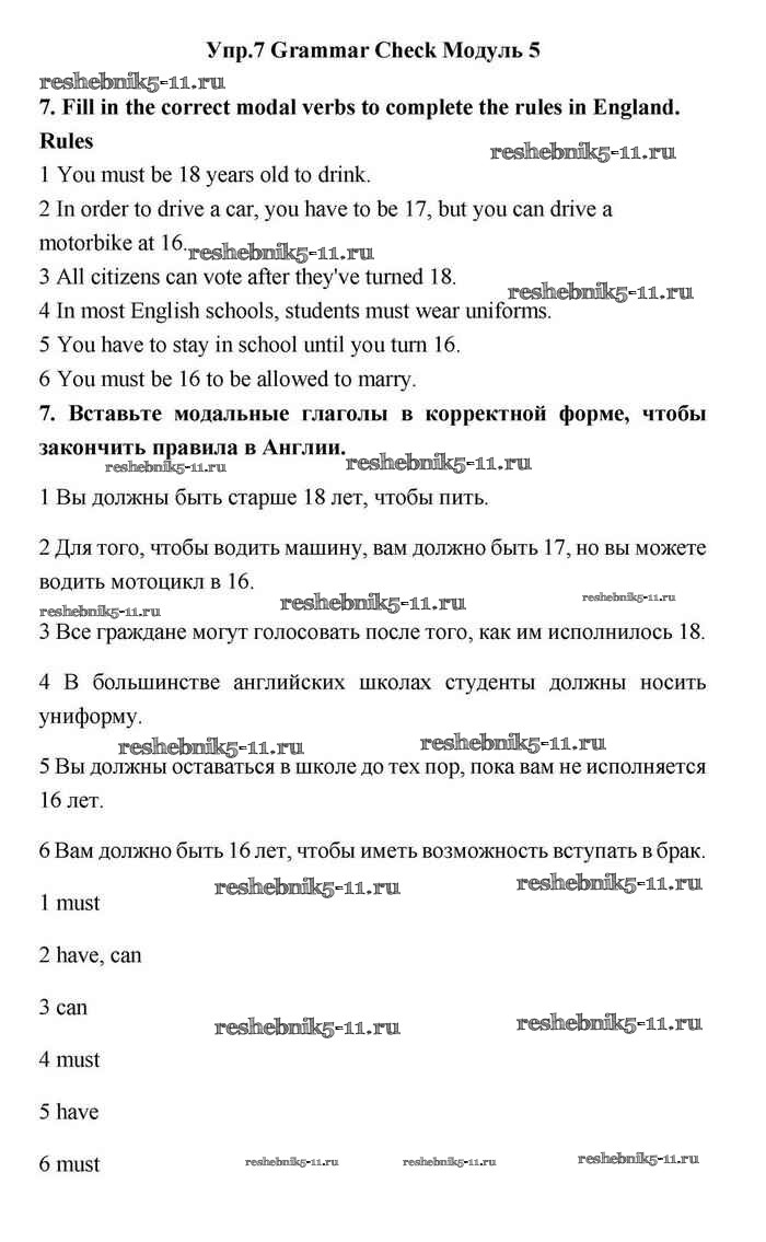 Решебник №1 / grammar check / module 5 / 7