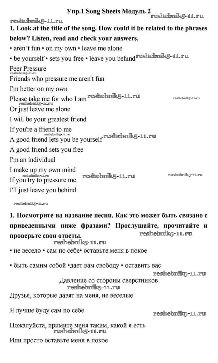 Готовая домашняя работа с ответами по Английскому языку за 11 класс Эванс, Дули, Оби, Афанасьева, Михеева Учебник Spotlight Просвещение 2015 ФГОС - Module 2 1
