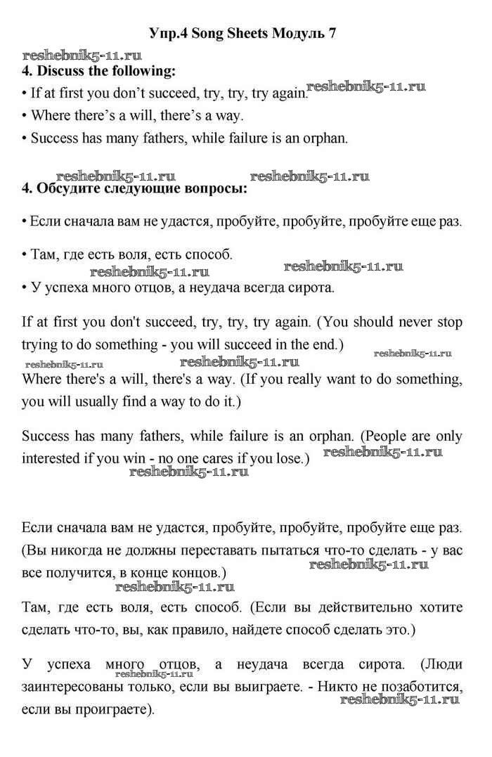 Готовая домашняя работа с ответами по Английскому языку за 11 класс Эванс, Дули, Оби, Афанасьева, Михеева Учебник Spotlight Просвещение 2015 ФГОС - Module 7 4
