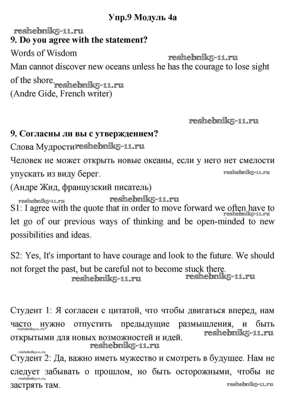 Готовая домашняя работа с ответами по Английскому языку за 11 класс Эванс, Дули, Оби, Афанасьева, Михеева Учебник Spotlight Просвещение 2015 ФГОС - Часть 4а 9