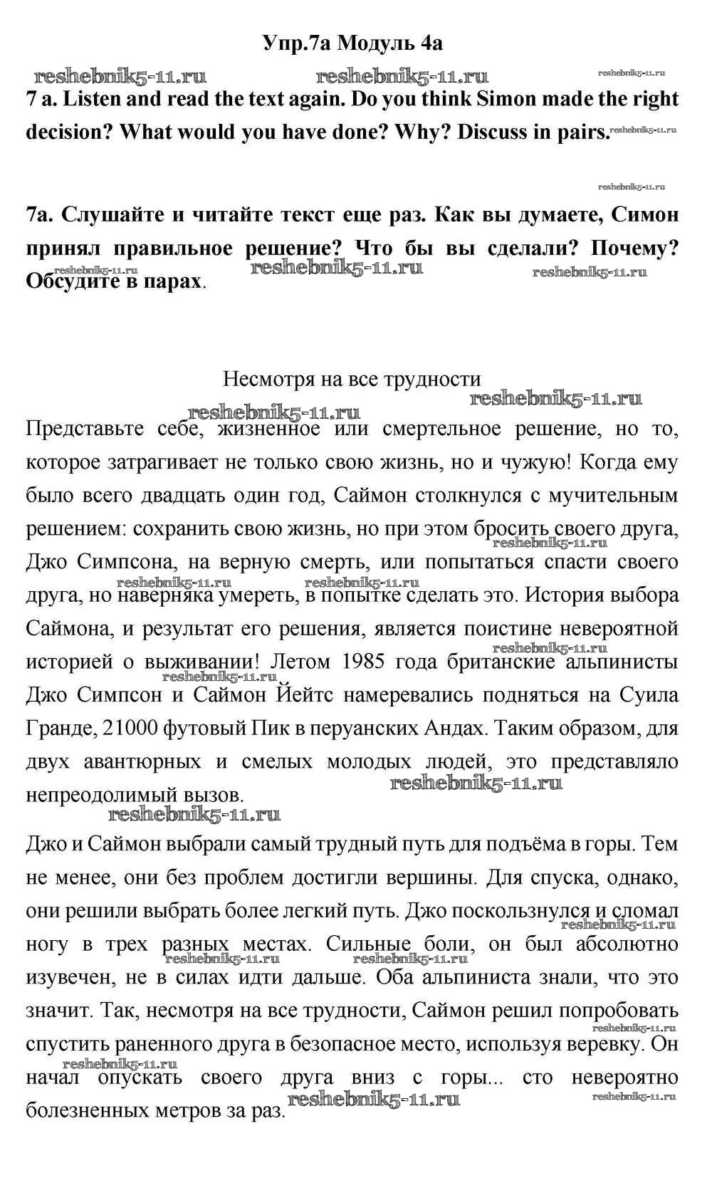 Готовая домашняя работа с ответами по Английскому языку за 11 класс Эванс, Дули, Оби, Афанасьева, Михеева Учебник Spotlight Просвещение 2015 ФГОС - Часть 4а 7a