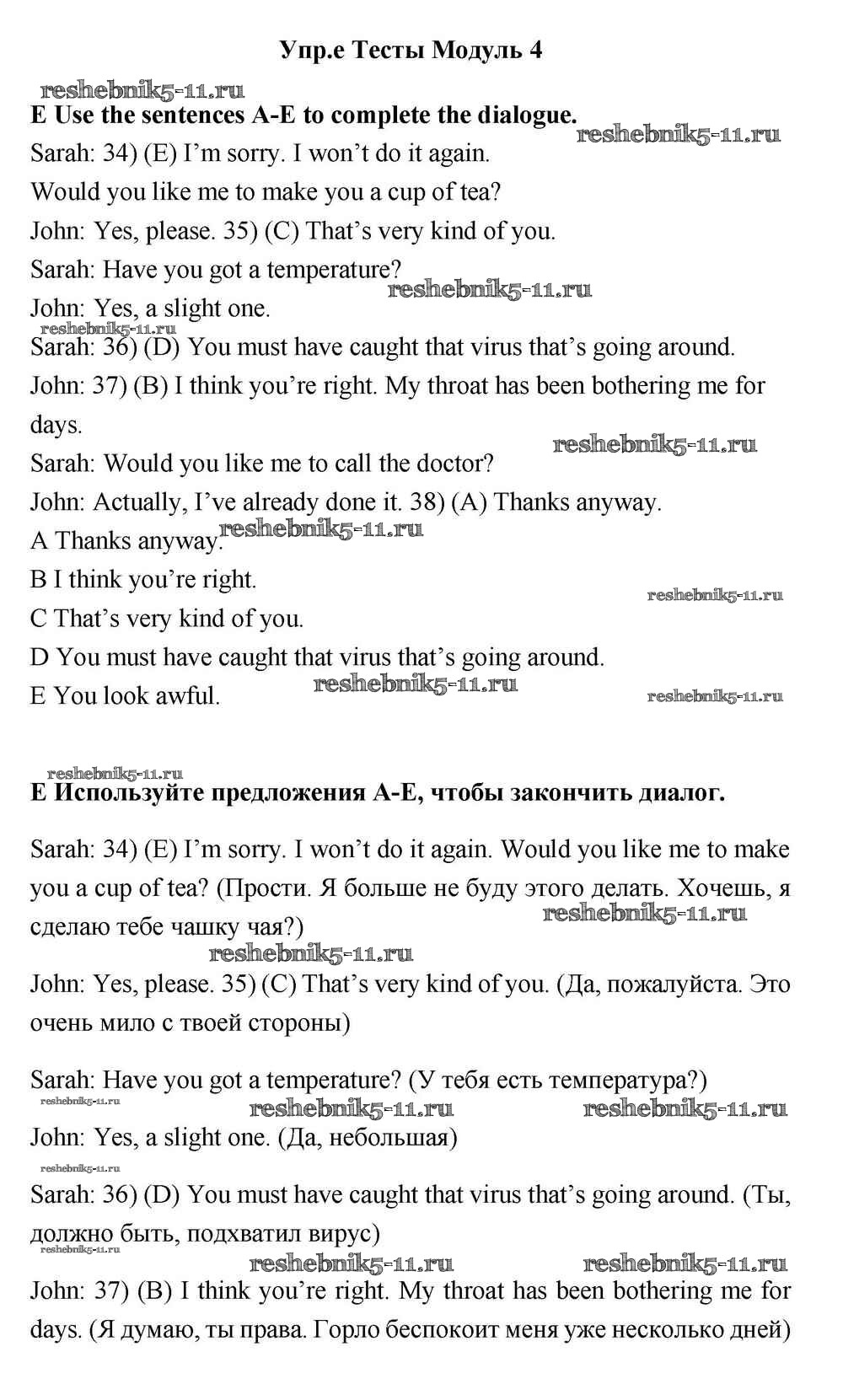 Готовая домашняя работа с ответами по Английскому языку за 11 класс Эванс, Дули, Оби, Афанасьева, Михеева Учебник Spotlight Просвещение 2015 ФГОС - Тесты E