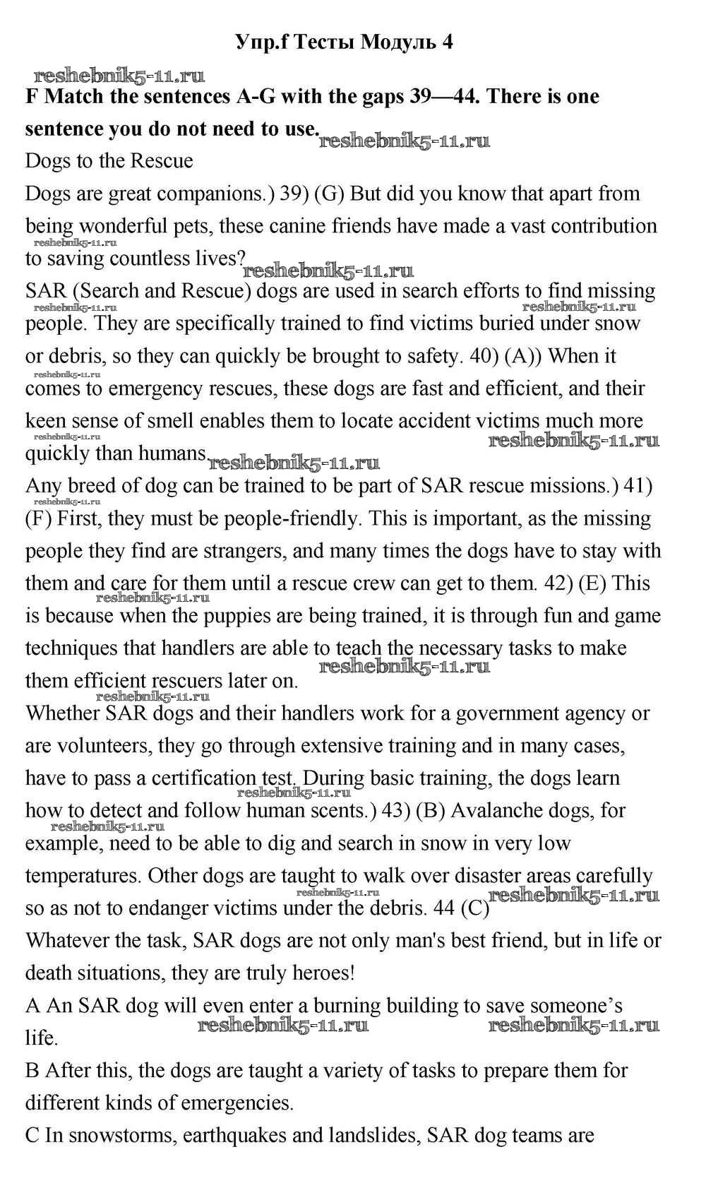 Готовая домашняя работа с ответами по Английскому языку за 11 класс Эванс, Дули, Оби, Афанасьева, Михеева Учебник Spotlight Просвещение 2015 ФГОС - Тесты F
