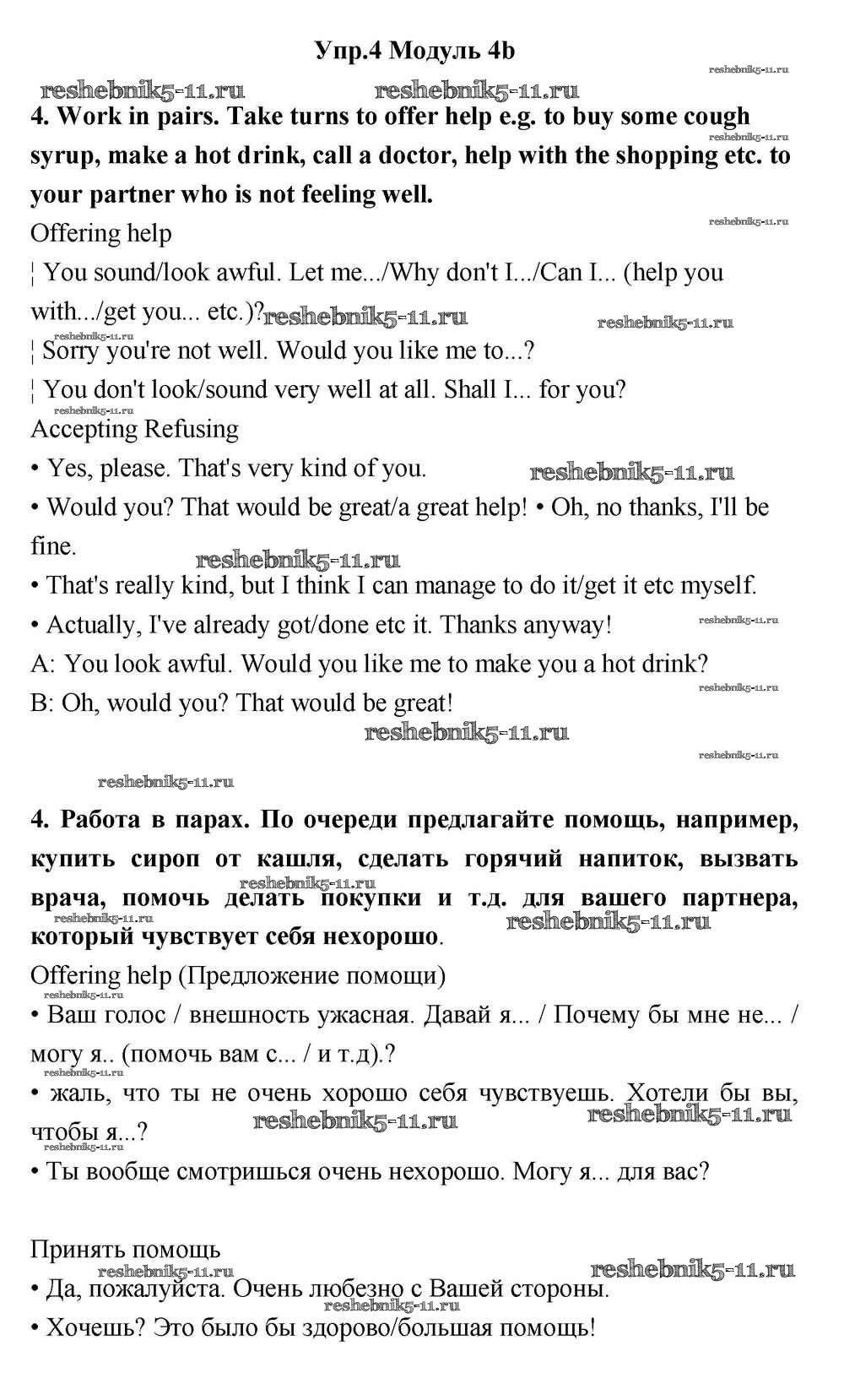 Готовая домашняя работа с ответами по Английскому языку за 11 класс Эванс, Дули, Оби, Афанасьева, Михеева Учебник Spotlight Просвещение 2015 ФГОС - Часть 4b 4