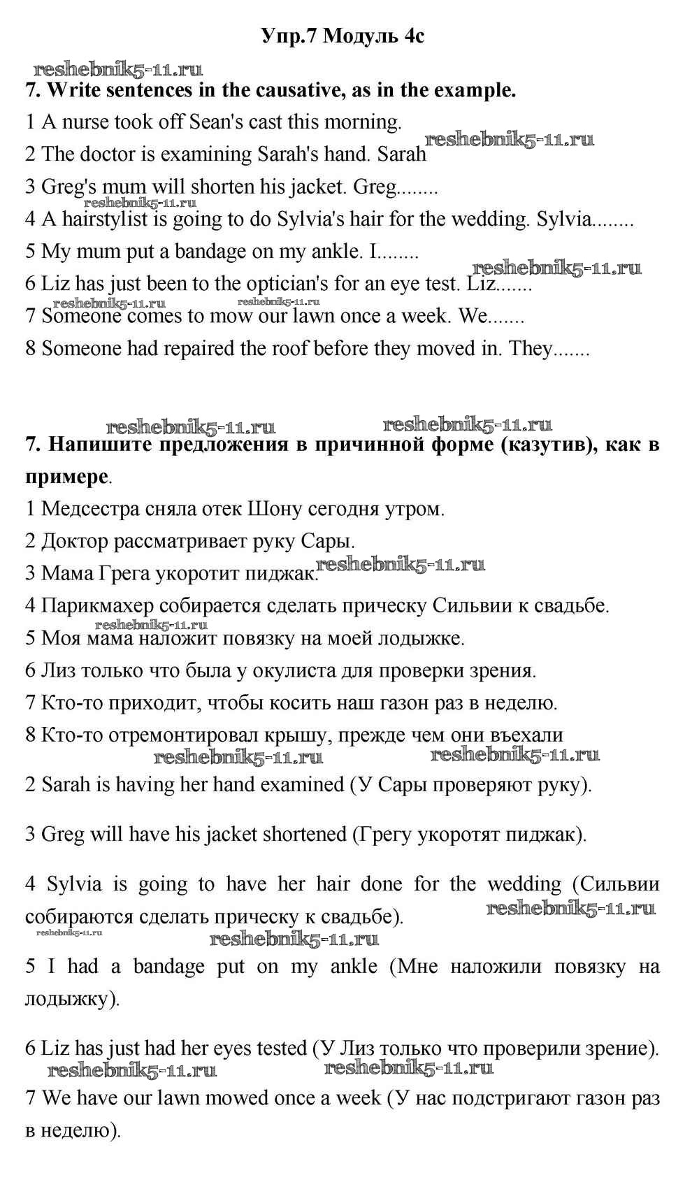Готовая домашняя работа с ответами по Английскому языку за 11 класс Эванс, Дули, Оби, Афанасьева, Михеева Учебник Spotlight Просвещение 2015 ФГОС - Часть 4c 7