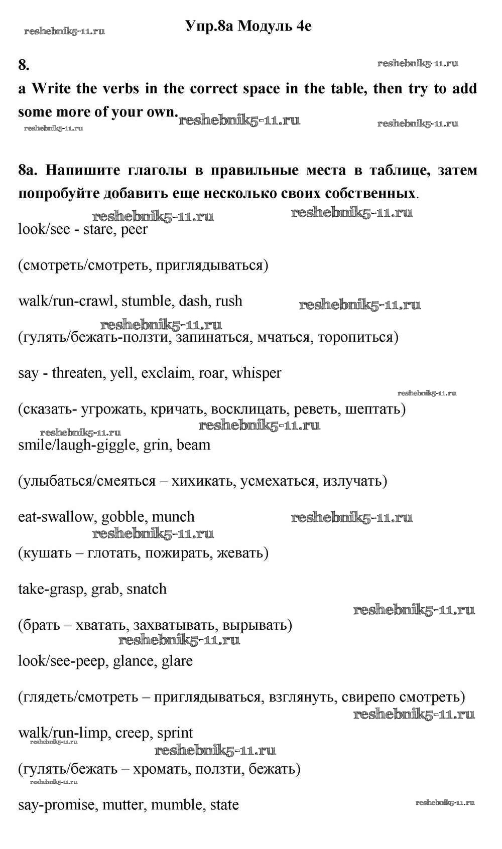 Готовая домашняя работа с ответами по Английскому языку за 11 класс Эванс, Дули, Оби, Афанасьева, Михеева Учебник Spotlight Просвещение 2015 ФГОС - Часть 4e 8a
