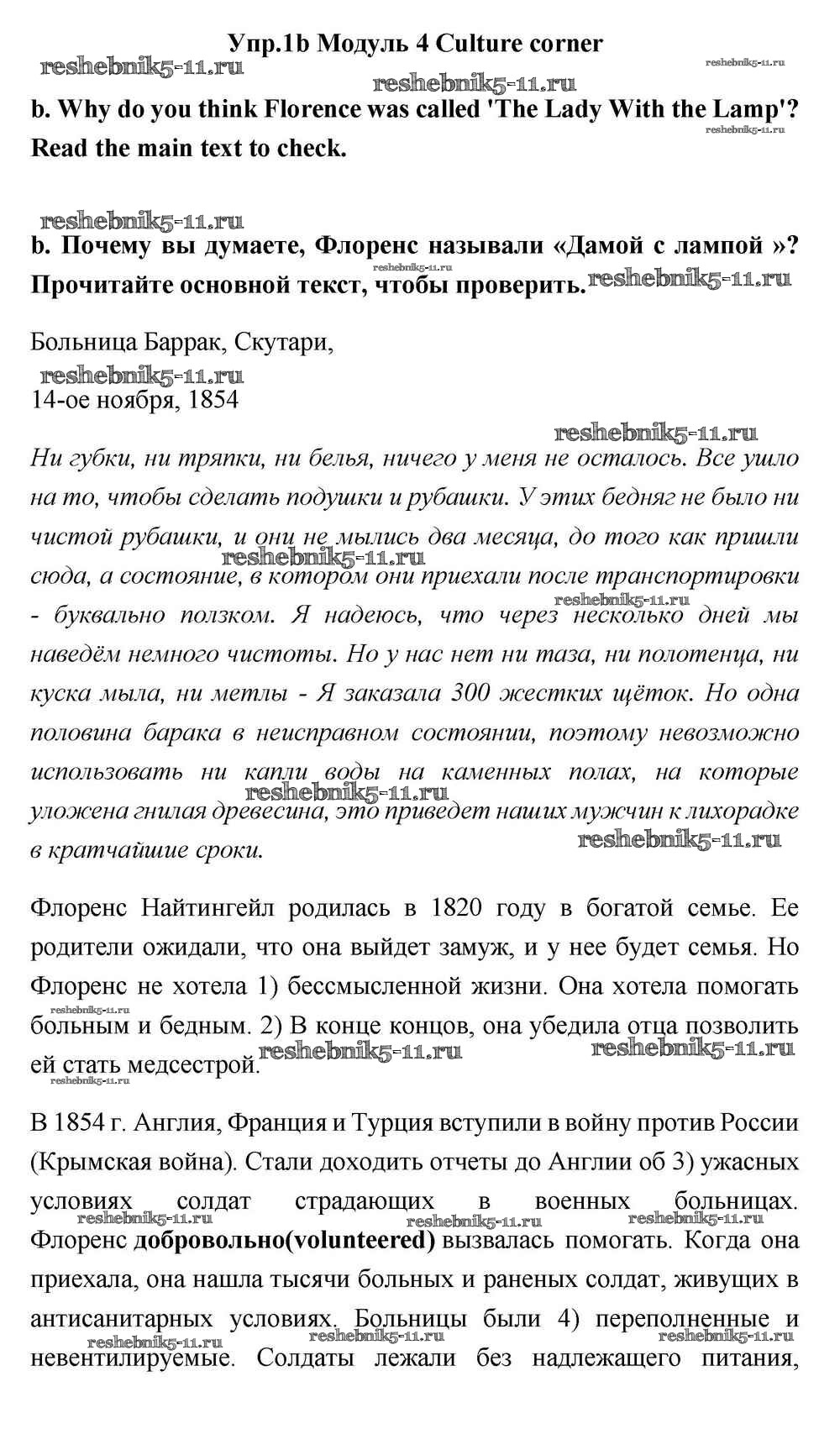 Готовая домашняя работа с ответами по Английскому языку за 11 класс Эванс, Дули, Оби, Афанасьева, Михеева Учебник Spotlight Просвещение 2015 ФГОС - Culture corner 1b