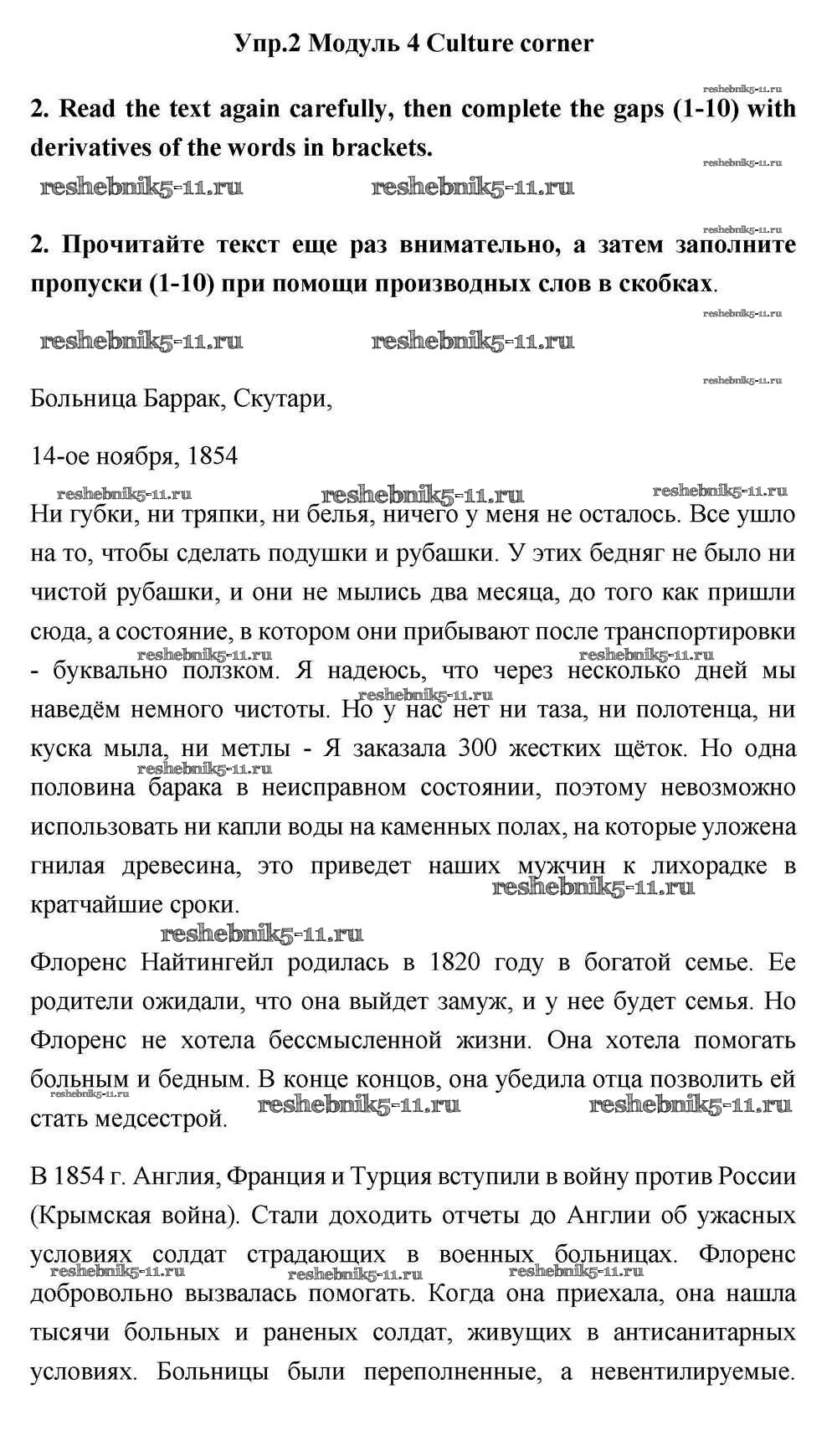 Готовая домашняя работа с ответами по Английскому языку за 11 класс Эванс, Дули, Оби, Афанасьева, Михеева Учебник Spotlight Просвещение 2015 ФГОС - Culture corner 2