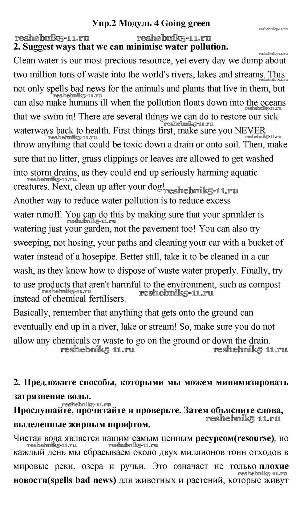 Готовая домашняя работа с ответами по Английскому языку за 11 класс Эванс, Дули, Оби, Афанасьева, Михеева Учебник Spotlight Просвещение 2015 ФГОС - Going green 2