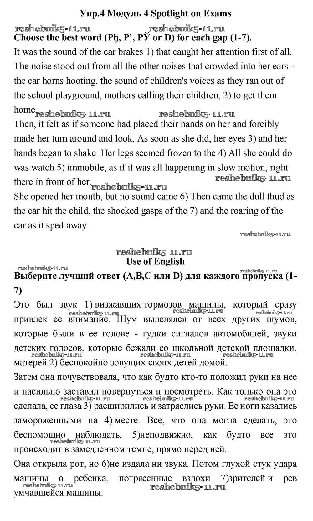 Готовая домашняя работа с ответами по Английскому языку за 11 класс Эванс, Дули, Оби, Афанасьева, Михеева Учебник Spotlight Просвещение 2015 ФГОС - Spotlight on Exams 4
