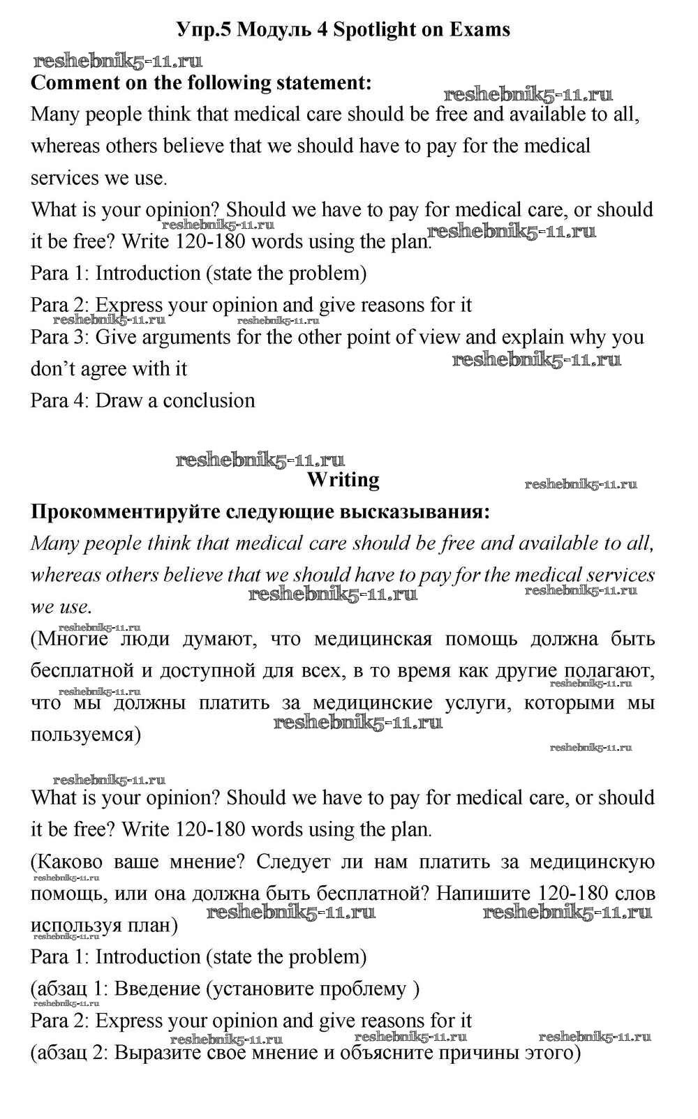 Готовая домашняя работа с ответами по Английскому языку за 11 класс Эванс, Дули, Оби, Афанасьева, Михеева Учебник Spotlight Просвещение 2015 ФГОС - Spotlight on Exams 5