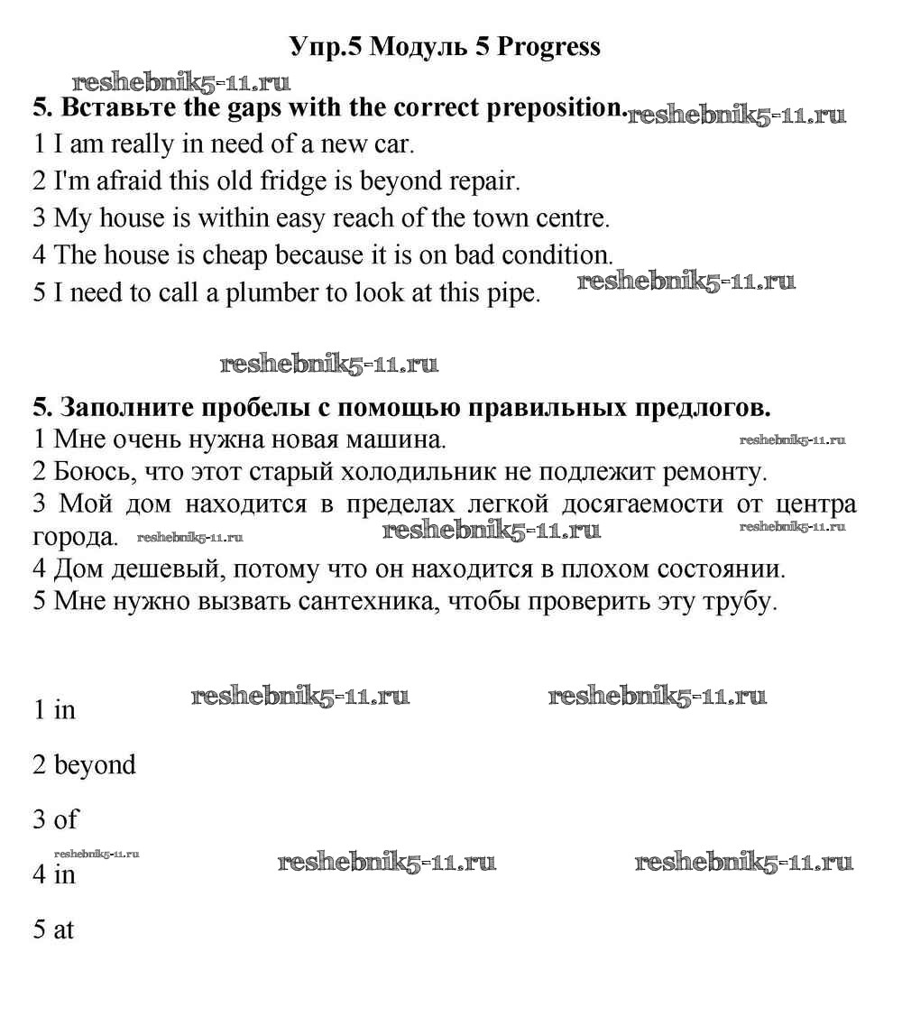 Готовая домашняя работа с ответами по Английскому языку за 11 класс Эванс, Дули, Оби, Афанасьева, Михеева Учебник Spotlight Просвещение 2015 ФГОС - Progress Check 5