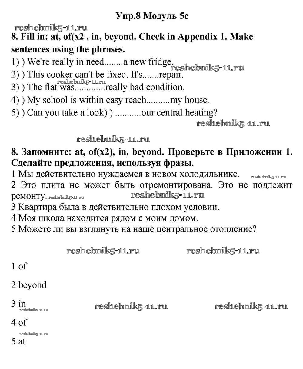 Готовая домашняя работа с ответами по Английскому языку за 11 класс Эванс, Дули, Оби, Афанасьева, Михеева Учебник Spotlight Просвещение 2015 ФГОС - Часть 5c 8