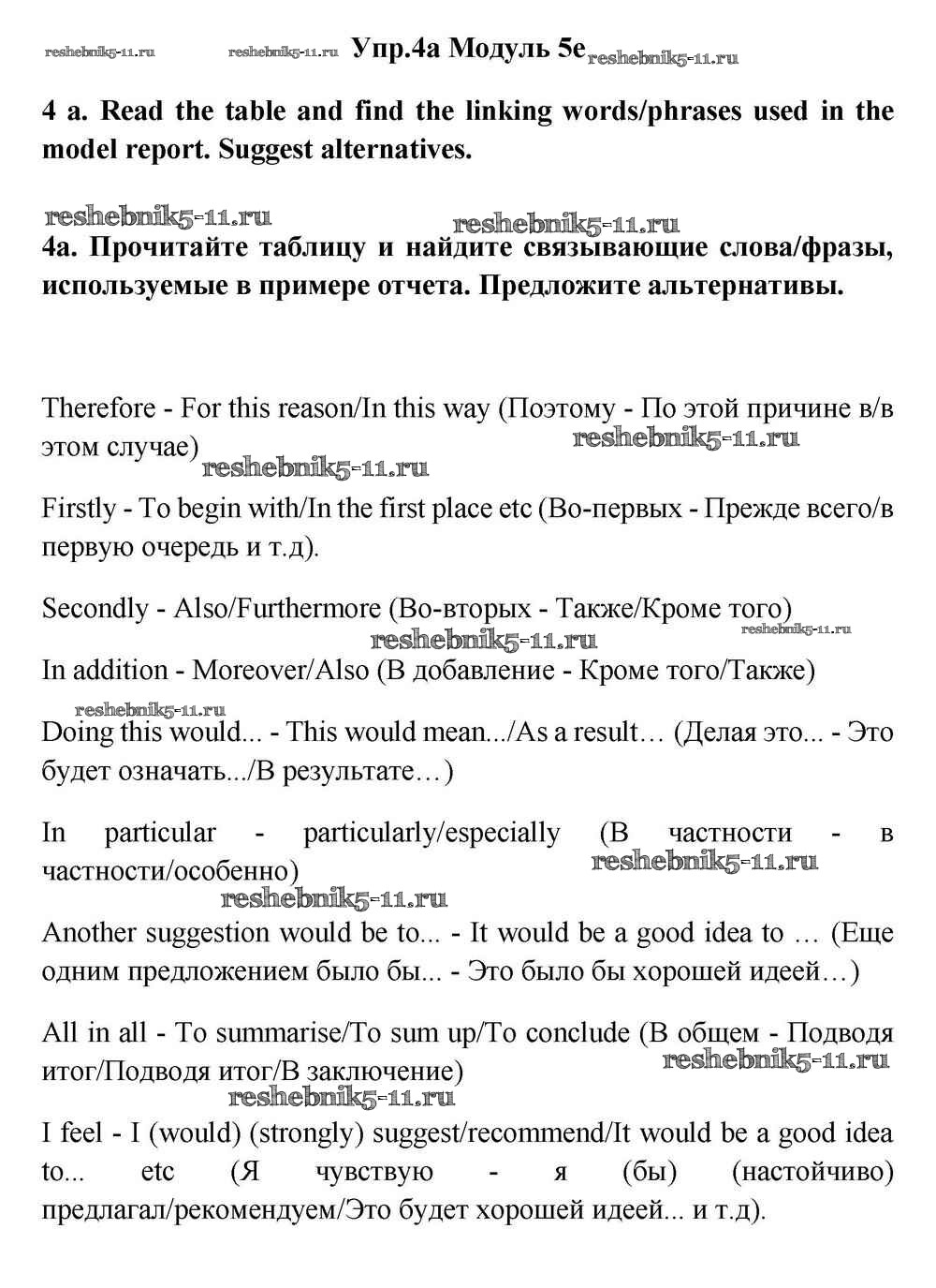Готовая домашняя работа с ответами по Английскому языку за 11 класс Эванс, Дули, Оби, Афанасьева, Михеева Учебник Spotlight Просвещение 2015 ФГОС - Часть 5e 4a