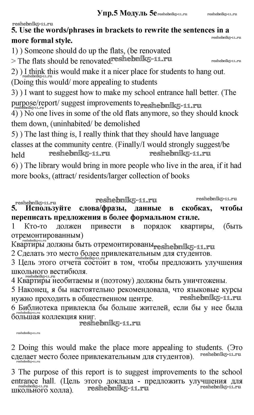 Готовая домашняя работа с ответами по Английскому языку за 11 класс Эванс, Дули, Оби, Афанасьева, Михеева Учебник Spotlight Просвещение 2015 ФГОС - Часть 5e 5