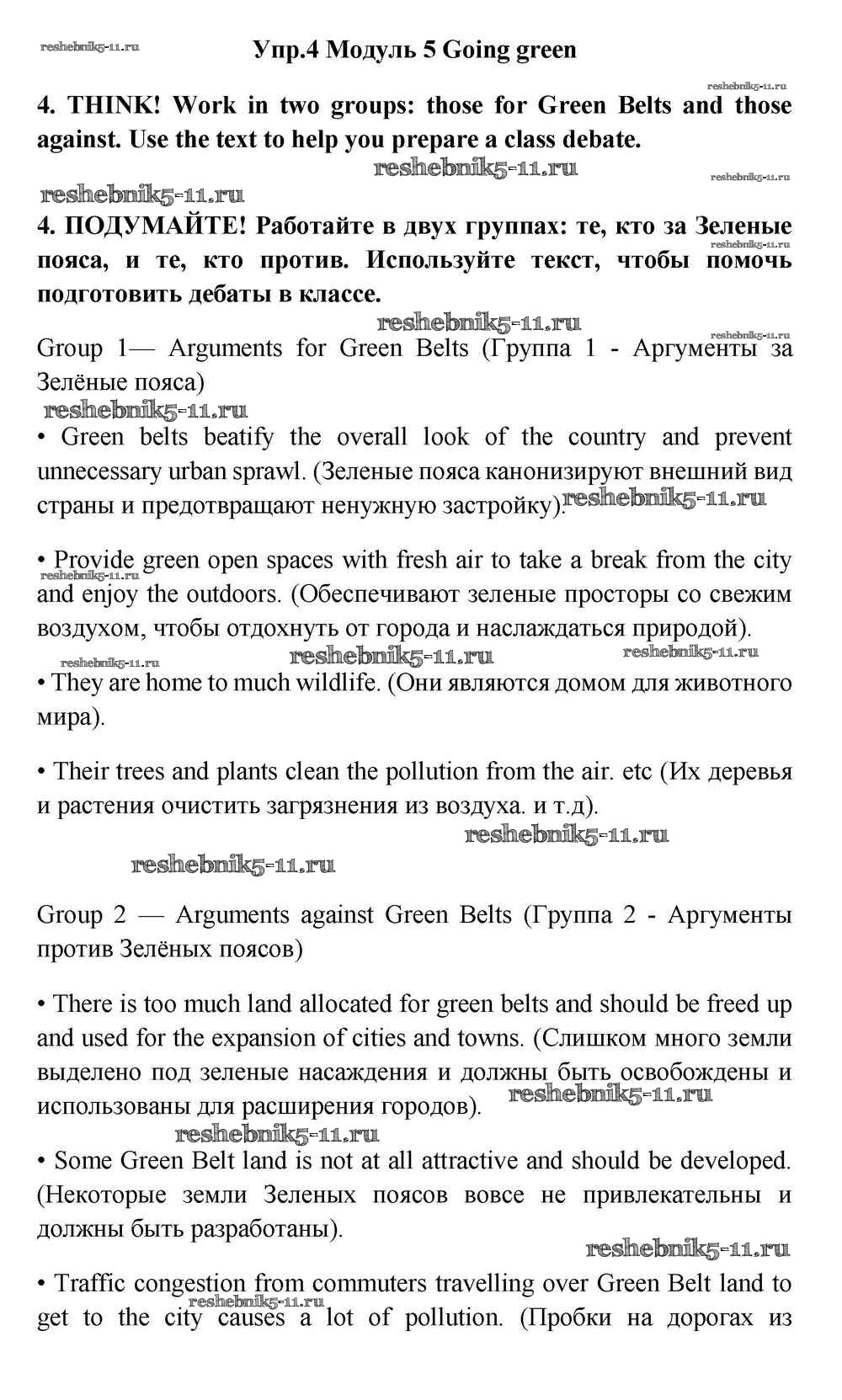 Готовая домашняя работа с ответами по Английскому языку за 11 класс Эванс, Дули, Оби, Афанасьева, Михеева Учебник Spotlight Просвещение 2015 ФГОС - Going green 4