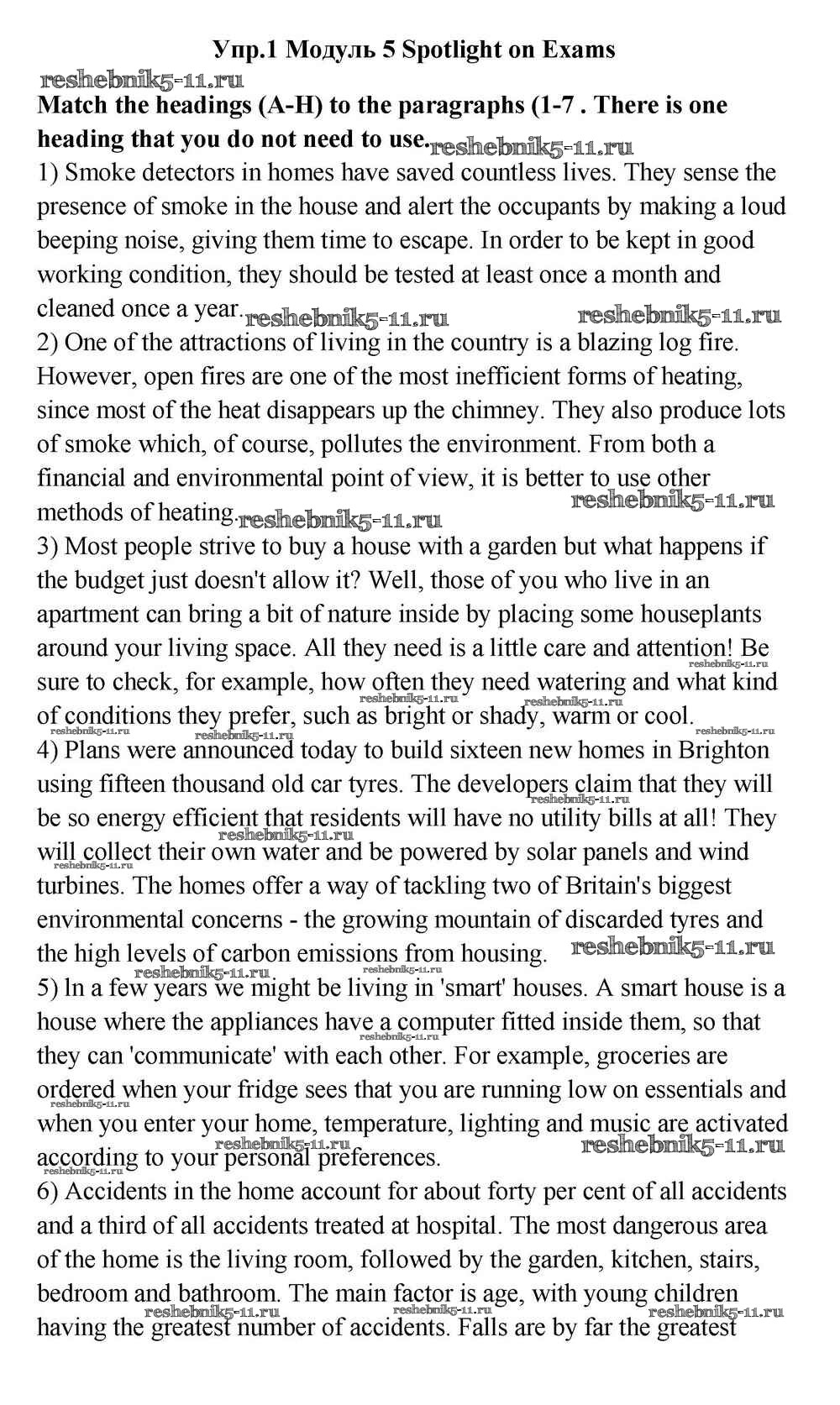 Готовая домашняя работа с ответами по Английскому языку за 11 класс Эванс, Дули, Оби, Афанасьева, Михеева Учебник Spotlight Просвещение 2015 ФГОС - Spotlight on Exams 1