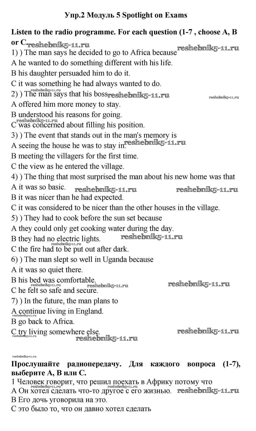 Готовая домашняя работа с ответами по Английскому языку за 11 класс Эванс, Дули, Оби, Афанасьева, Михеева Учебник Spotlight Просвещение 2015 ФГОС - Spotlight on Exams 2