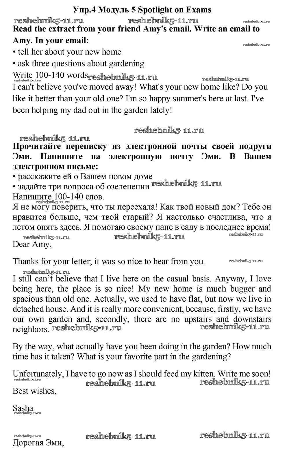 Готовая домашняя работа с ответами по Английскому языку за 11 класс Эванс, Дули, Оби, Афанасьева, Михеева Учебник Spotlight Просвещение 2015 ФГОС - Spotlight on Exams 4