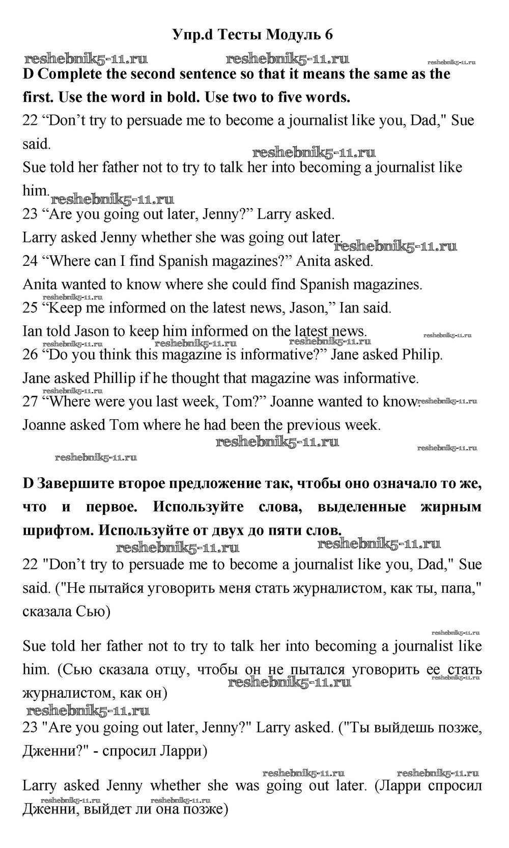 Готовая домашняя работа с ответами по Английскому языку за 11 класс Эванс, Дули, Оби, Афанасьева, Михеева Учебник Spotlight Просвещение 2015 ФГОС - Тесты D