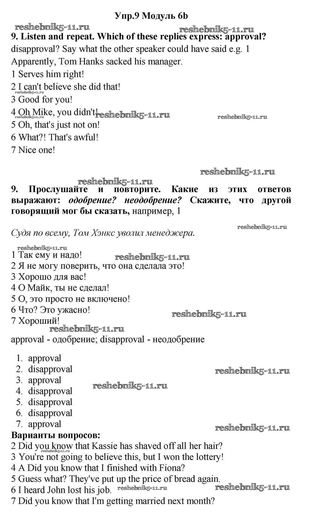 Готовая домашняя работа с ответами по Английскому языку за 11 класс Эванс, Дули, Оби, Афанасьева, Михеева Учебник Spotlight Просвещение 2015 ФГОС - Часть 6b 9