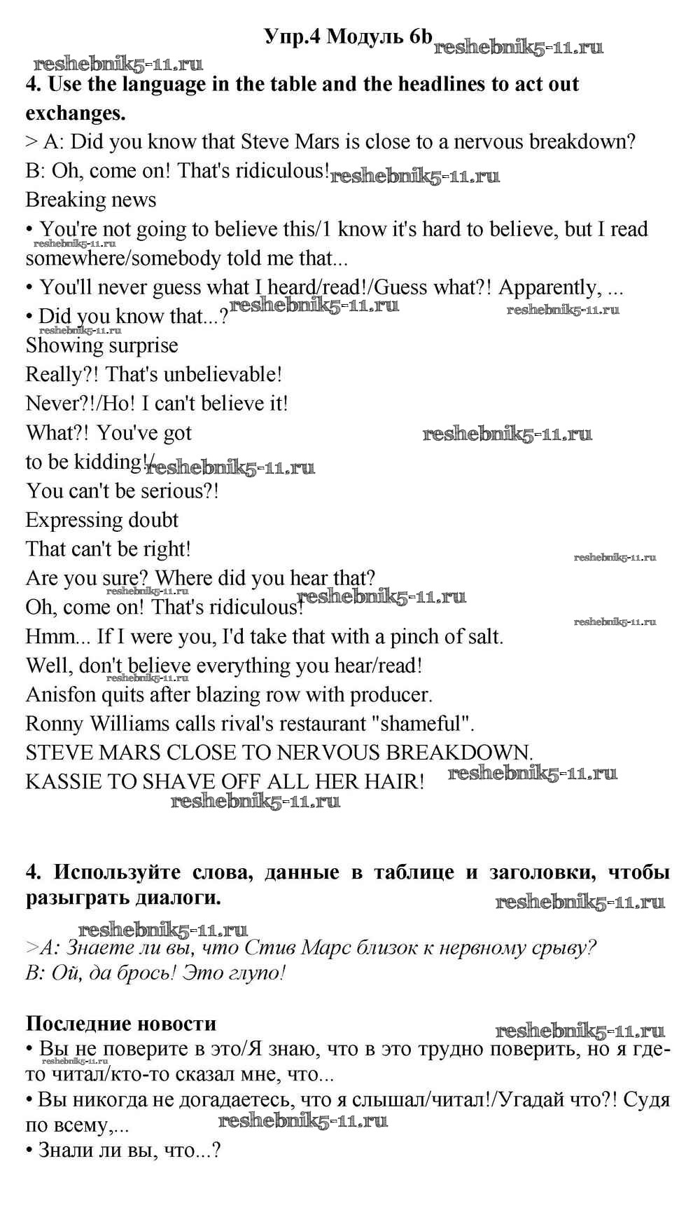 Готовая домашняя работа с ответами по Английскому языку за 11 класс Эванс, Дули, Оби, Афанасьева, Михеева Учебник Spotlight Просвещение 2015 ФГОС - Часть 6b 4