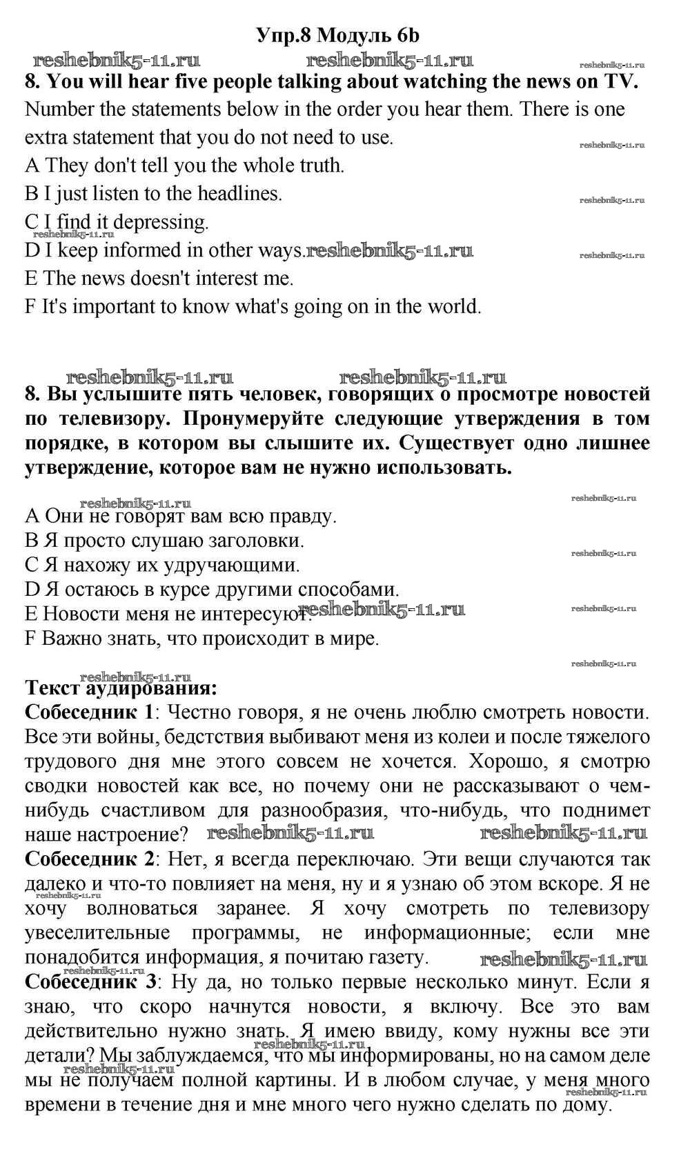 Готовая домашняя работа с ответами по Английскому языку за 11 класс Эванс, Дули, Оби, Афанасьева, Михеева Учебник Spotlight Просвещение 2015 ФГОС - Часть 6b 8