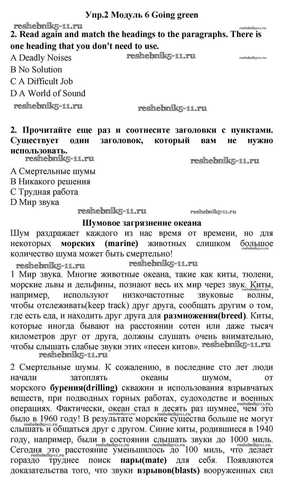 Готовая домашняя работа с ответами по Английскому языку за 11 класс Эванс, Дули, Оби, Афанасьева, Михеева Учебник Spotlight Просвещение 2015 ФГОС - Going green 2
