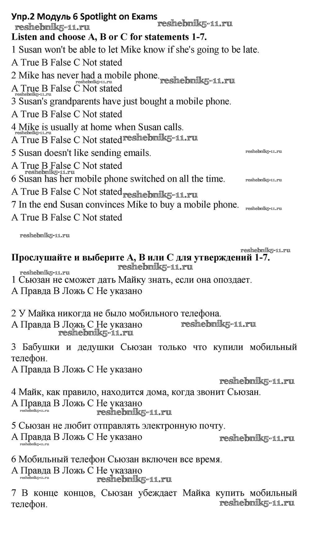 Готовая домашняя работа с ответами по Английскому языку за 11 класс Эванс, Дули, Оби, Афанасьева, Михеева Учебник Spotlight Просвещение 2015 ФГОС - Spotlight on Exams 2