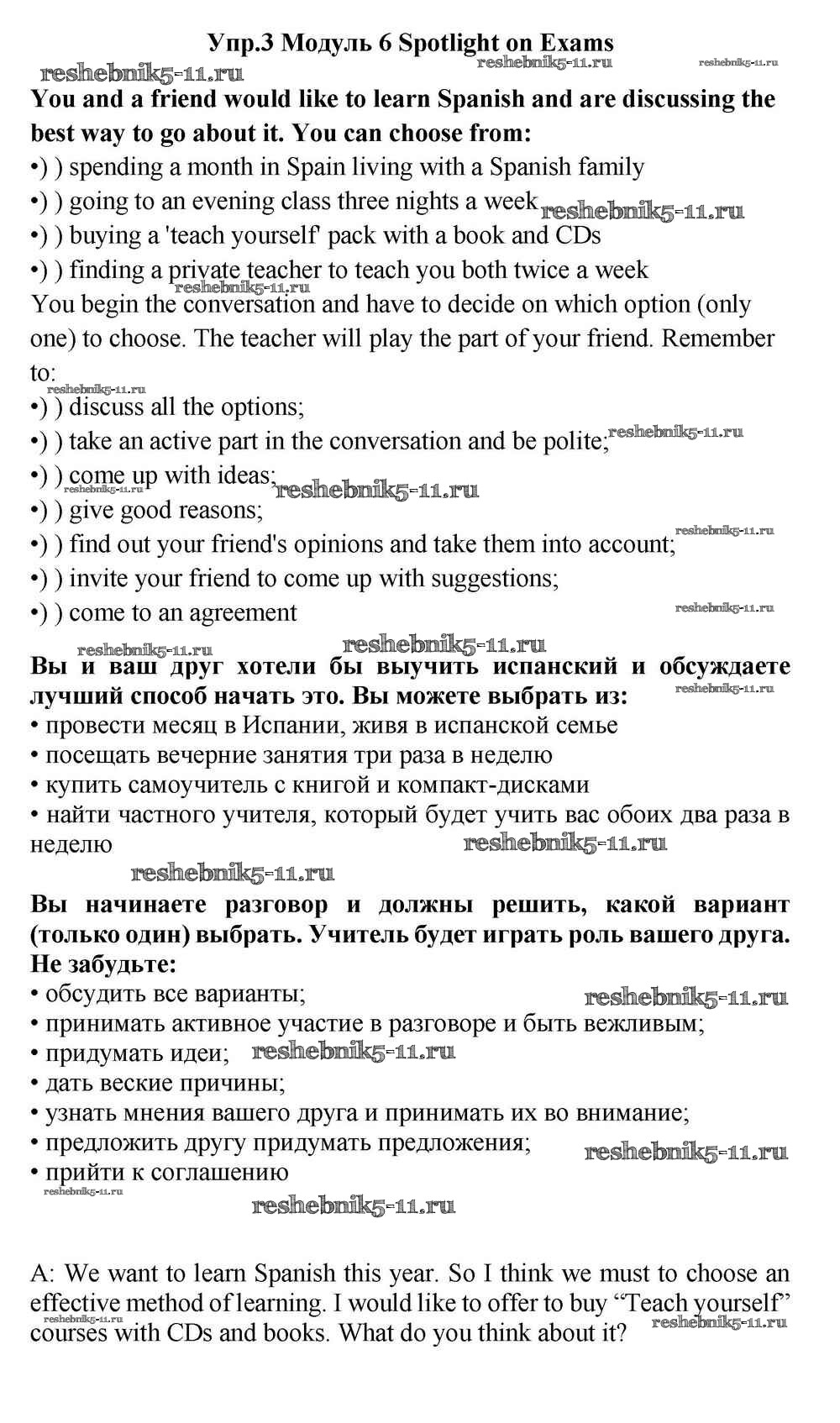 Готовая домашняя работа с ответами по Английскому языку за 11 класс Эванс, Дули, Оби, Афанасьева, Михеева Учебник Spotlight Просвещение 2015 ФГОС - Spotlight on Exams 3