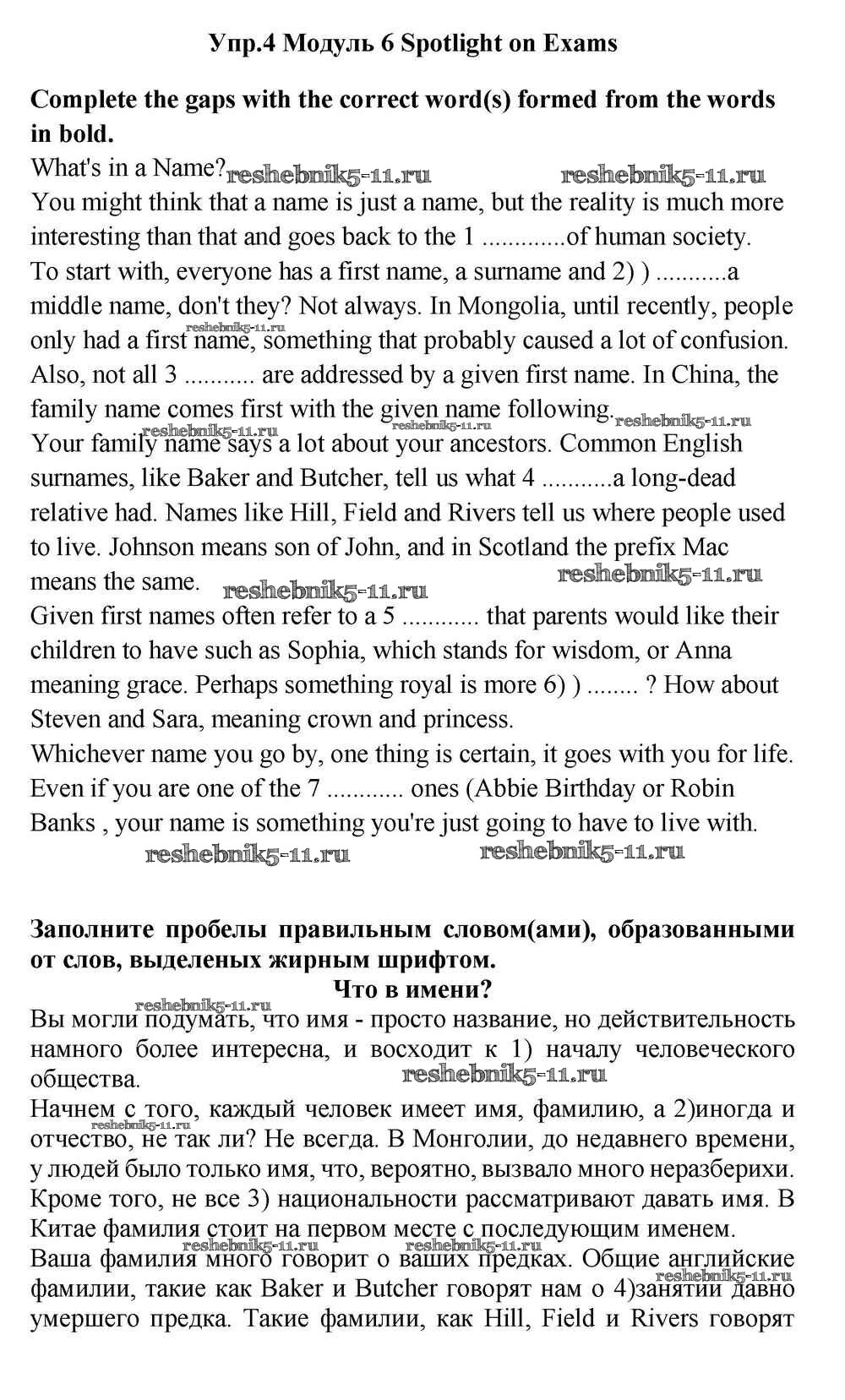 Готовая домашняя работа с ответами по Английскому языку за 11 класс Эванс, Дули, Оби, Афанасьева, Михеева Учебник Spotlight Просвещение 2015 ФГОС - Spotlight on Exams 4