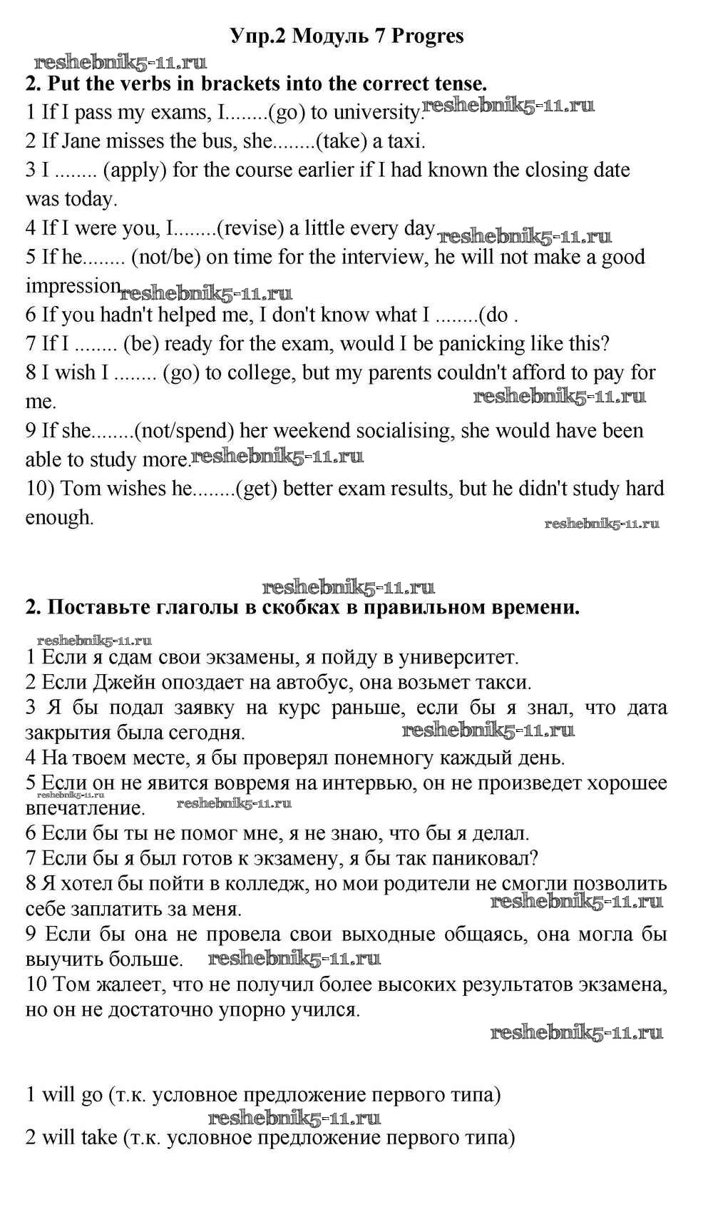 Готовая домашняя работа с ответами по Английскому языку за 11 класс Эванс, Дули, Оби, Афанасьева, Михеева Учебник Spotlight Просвещение 2015 ФГОС - Progress Check 2