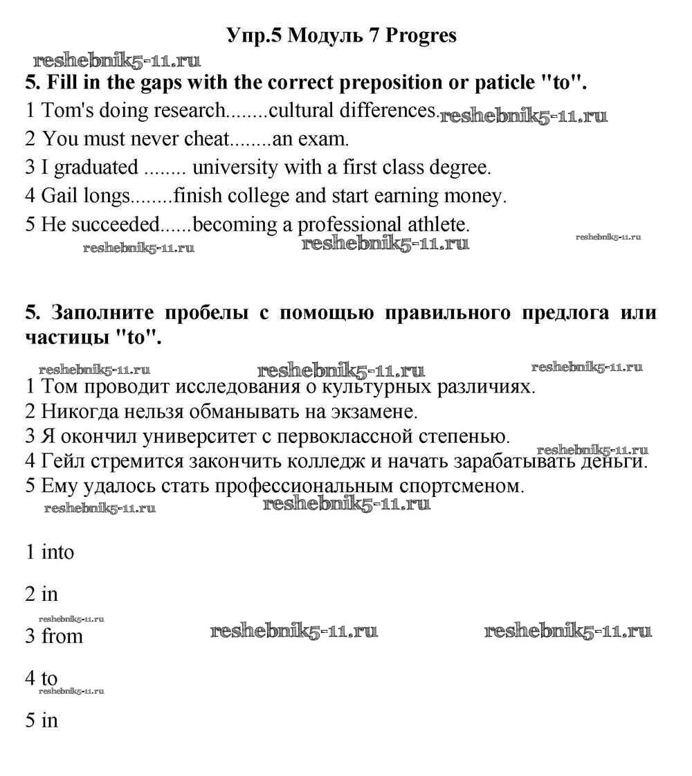Готовая домашняя работа с ответами по Английскому языку за 11 класс Эванс, Дули, Оби, Афанасьева, Михеева Учебник Spotlight Просвещение 2015 ФГОС - Progress Check 5