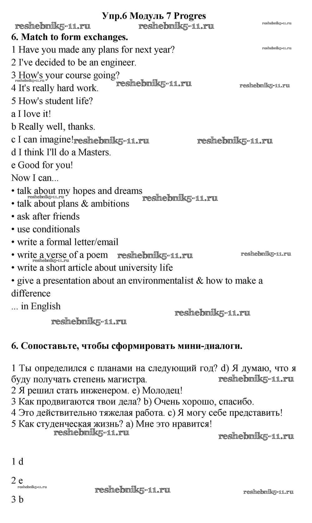 Готовая домашняя работа с ответами по Английскому языку за 11 класс Эванс, Дули, Оби, Афанасьева, Михеева Учебник Spotlight Просвещение 2015 ФГОС - Progress Check 6