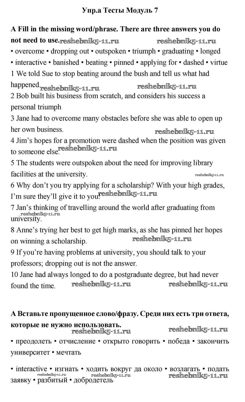 Готовая домашняя работа с ответами по Английскому языку за 11 класс Эванс, Дули, Оби, Афанасьева, Михеева Учебник Spotlight Просвещение 2015 ФГОС - Тесты A